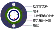 產品型號: GYXTW 中心松套管光纖 纜芯填充油膏 軋紋鋼帶粘結PE護套 夾帶雙平行鋼絲PE護套 | |||